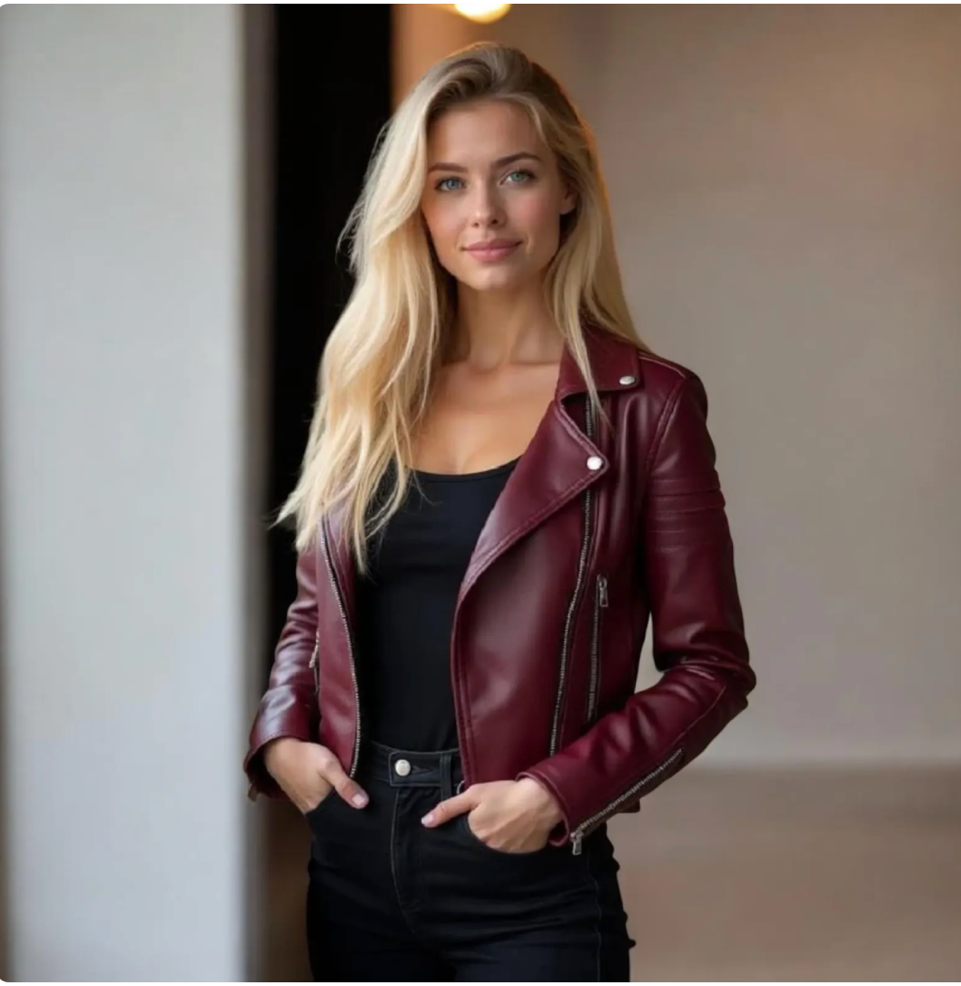 Flashback Maroon Leather Biker Jacket with the customizations you’ve outlined: